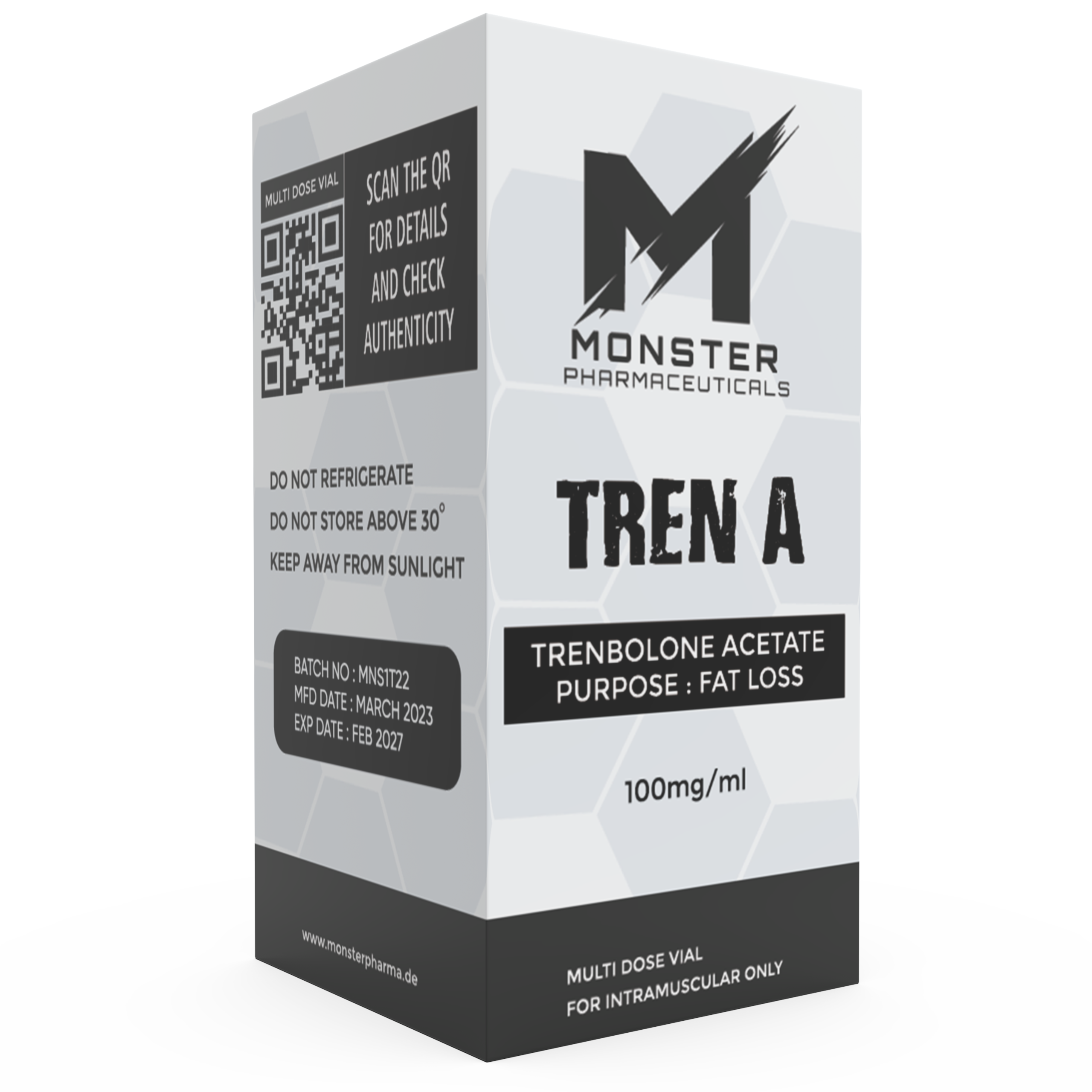 Tren A is an oil based solution of trenbolone acetate for IM injection. Trenbolone is an anabolic steroid with significant anabolic and androgenic effects. The fast acting ester produces a rapid increase in serum trenbolone levels which remain elevated for 3-4 days thereafter. Trenbolone promotes significant increases in strength, muscle anabolism, appetite and aggression, and has been demonstrated to reduce body fat.